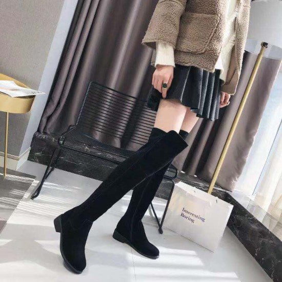 ロングブーツ レディース ニーハイブーツ 靴 シューズ ブーツ ロング丈 黒 ブラック カジュアル お出掛け おしゃれ シンプル 無地 膝上 スエード サイドジッパー ミドルヒール ロング ニーハイ