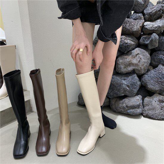 ロングブーツ レディース ブーツ 靴 シューズ ロング丈 シンプル 無地 スクエアトゥ ミドルヒール カジュアル お出掛け きれいめ おしゃれ 秋冬 歩きやすい 履きやすい バックジップ ブーツ