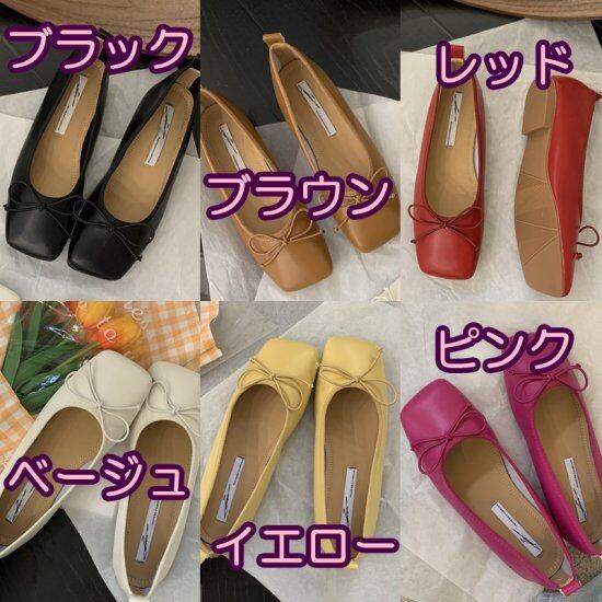 パンプス スクエアトゥ ペタンコシューズ レディース 韓国 ファッション ローヒール ローパンプス リボンパンプス スクエア 無地 カラフル フラットシューズ バレエシューズ スクエアトゥ ぺたんこ