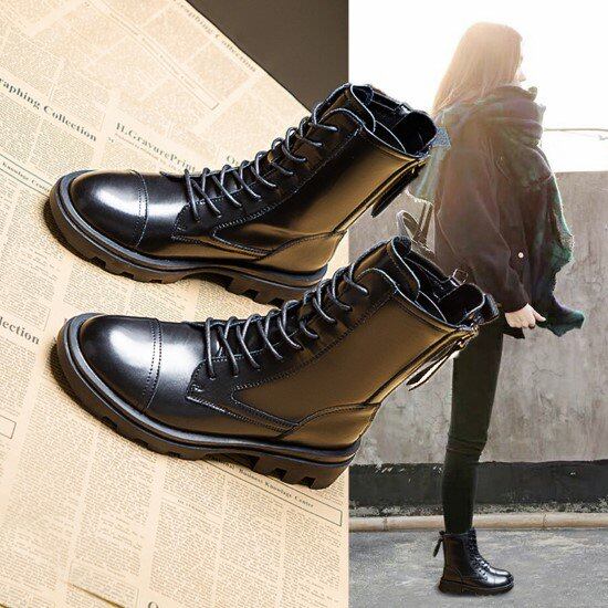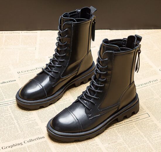 ブーツ レディース 靴 シューズ レースアップ サイドジッパー カジュアル お出掛け おしゃれ クール 黒 ブラック ハンサム ローヒール ミドルブーツ ブーツ