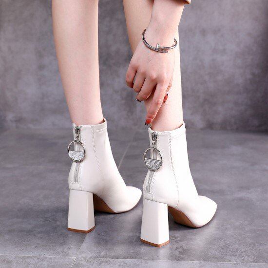 ショートブーツ レディース ブーツ 靴 シューズ バックジッパー チャーム付き スクエアトゥ ハイヒール 太ヒール カジュアル きれいめ おしゃれ お出掛け シンプル 無地 秋冬 ファッションブーツ