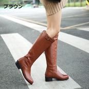 ロングブーツ レディース ブーツ ロング丈 靴 シューズ ベルト付き バックジッパー 太ヒール ローヒール 履きやすい 歩きやすい ブラック ブラウン 黒 茶 シンプル 無地 秋冬 美脚 カジュアル