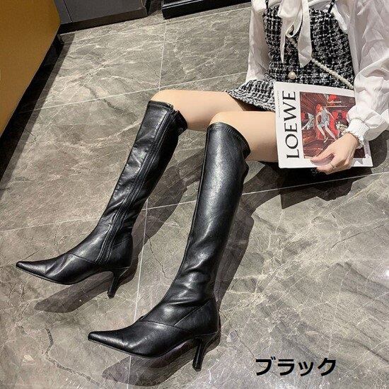 ロングブーツ レディース ブーツ 靴 シューズ ポインテッドトゥ サイドジッパー 白 黒 ホワイト ブラック スティレットヒール ハイヒール カジュアル きれいめ お出掛け おしゃれ ロング丈