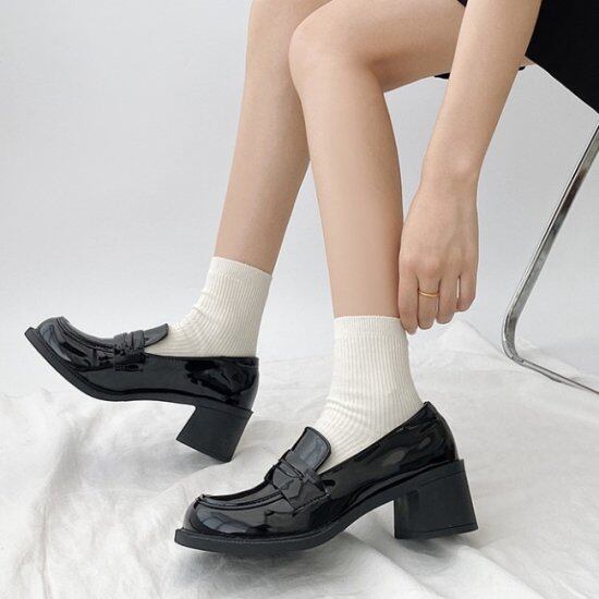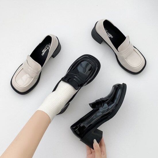 ローファー 厚底 レディース 韓国 ファッション スウエアトゥ 5cmヒール パテントレザー フェイクレザー シック 上品 ローファーシューズ おしゃれ 清楚 トラッドシューズ 冬コーデ