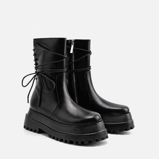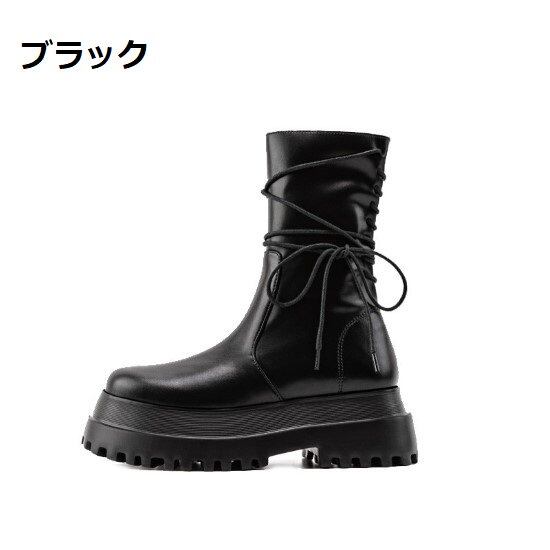 レザーブーツ レディース ブーツ 靴 シューズ レースアップ サイドジッパー カジュアル お出掛け おしゃれ クール 厚底 黒 白 ブラック ホワイト レザーブーツ レディースブーツ