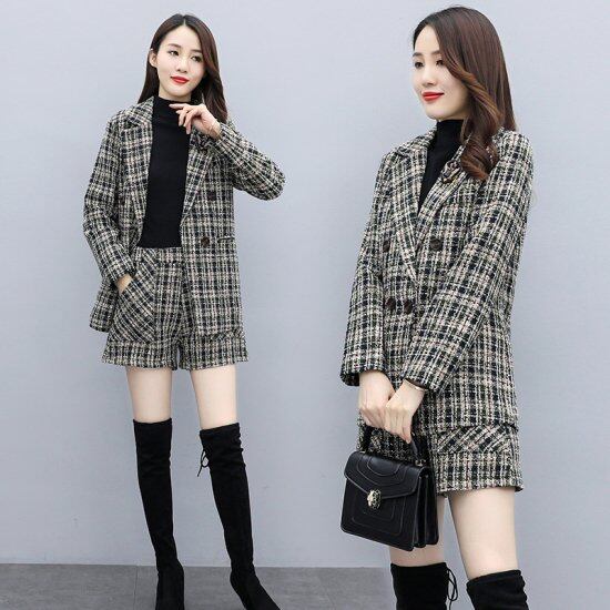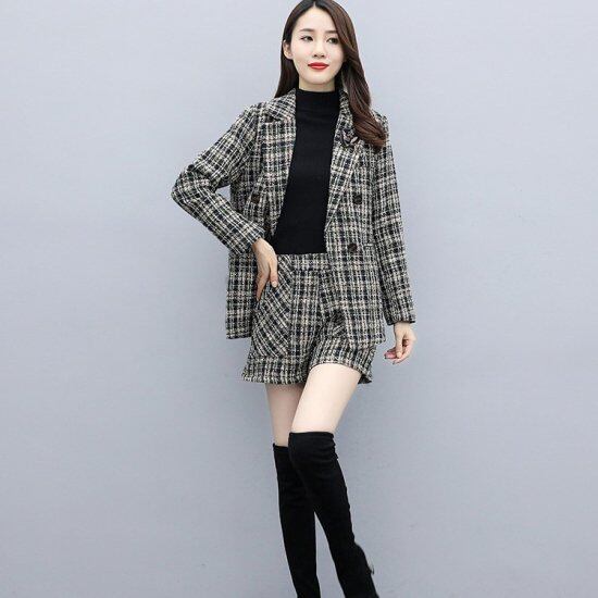 スーツ レディース セットアップ ツイード 大きいサイズ 上下セット チェック ショートパンツ テーラードジャケット 秋冬新作 秋冬 レディーススーツ 二点セット パンツスーツ ジャケット パンツ