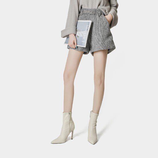 ショートブーツ レディース ブーティー 靴 シューズ ブーツ シンプル 無地 ハイヒール ピンヒール ポインテッドトゥ ベージュ 美脚 きれいめ サイドジッパー ファッションブーツ 春秋 カジュアル
