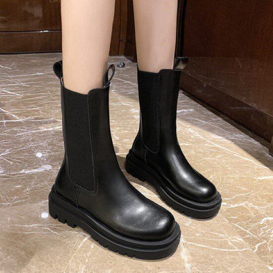 ブーツ レディース 靴 シューズ サイドゴアブーツ 黒 ブラック シンプル 無地 厚底 PU ラウンドトゥ カジュアル お出掛け 歩きやすい 疲れにくい ファッションブーツ おしゃれ サイドゴアブーツ