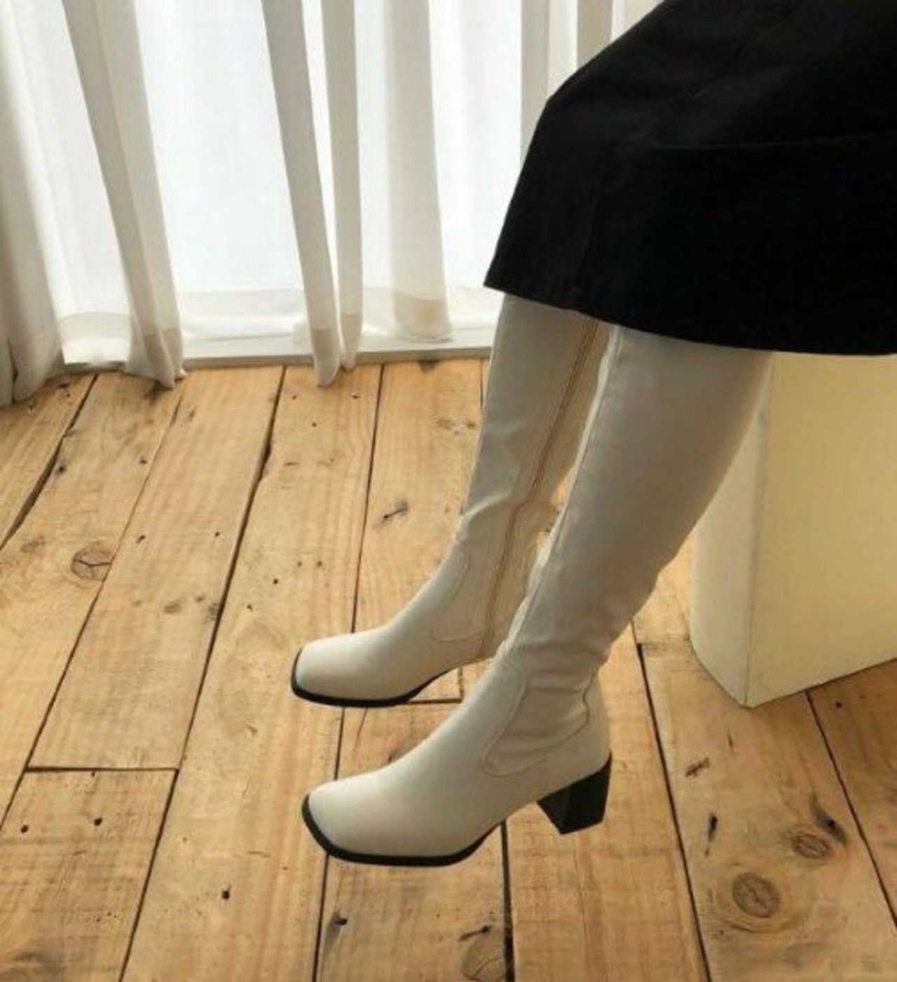 シンプル且つキレイめな無地のロングブーツ。