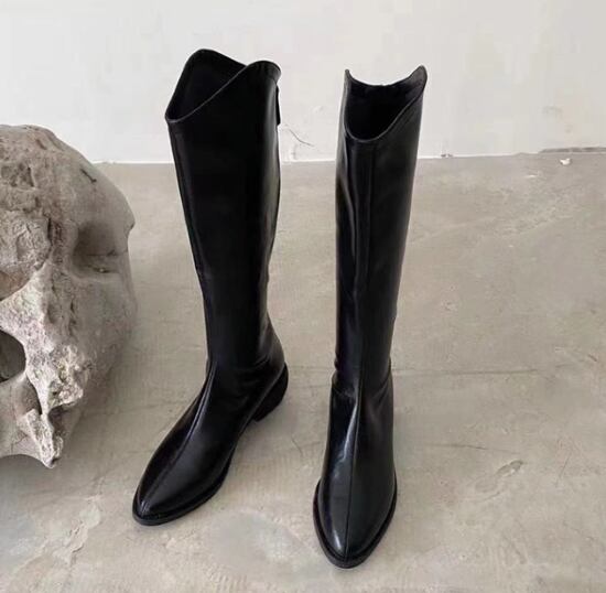 ロングブーツ レディース ブーツ ロング丈 靴 シューズ Vカット シンプル 無地 バックジッパー ポインテッドトゥ ローヒール 履きやすい 歩きやすい 疲れにくい カジュアル きれいめ 美脚