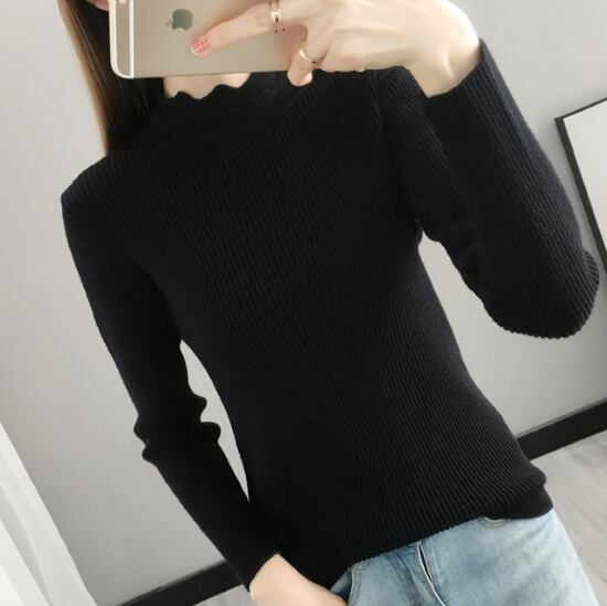 ニット レディース セーター トップス ハイネック 長袖 シンプル 無地 カジュアル お出掛け おしゃれ きれいめ フリル ウール スリムフィット プルオーバー ニットトップス レディース セーター