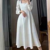 パフスリーブとAラインで上品に体型カバーできるワンピース