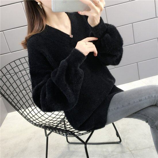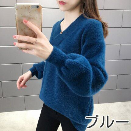 ニット レディース 大きいサイズ Vネックニット ニットトップス シャギーニット 起毛 ニットセーター ニットプルオーバー 秋冬新作 秋 冬 新作 冬ニット 冬物 Vネック 長袖 レディースニット