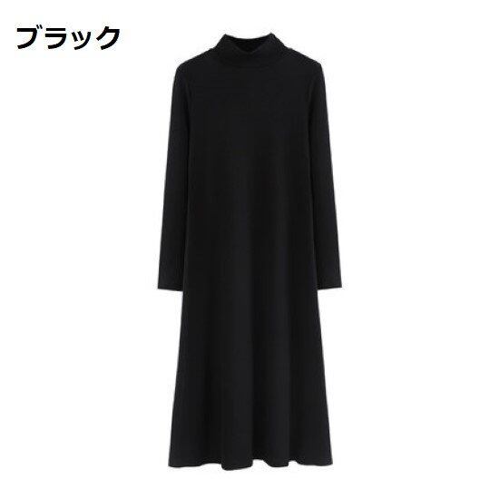 ひざ丈ワンピース レディース ワンピース ハイネック Aライン 長袖 シンプル 無地 綿 コットン プルオーバー カジュアル お出掛け おしゃれ きれいめ ハイウエスト スリムフィット ワンピース