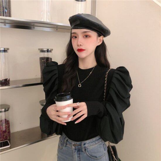 <br>jkx-8<br><br>ニット レディース パフスリーブ ランタンスリーブ 秋冬 秋冬新作 韓国 デザイン ニット パフスリーブトップス 長袖 カットソー ランタンスリーブトップス おしゃれ クルーネック ボリューム袖<br>