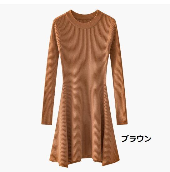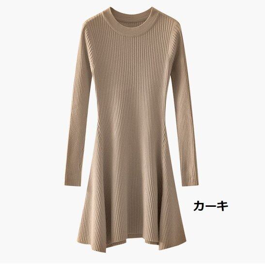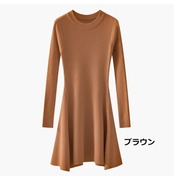 ニットワンピース リブニット アシンメトリー ミニ丈 ミディアム丈 ラウンドネック Aライン フレア スリム フィット レトロ クラシカル シンプル ベーシック きれいめ おしゃれ レディース