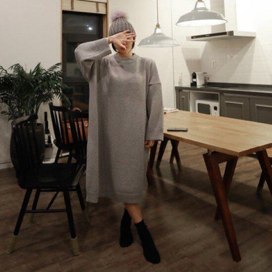 ニットワンピース レディース ワンピース 膝下ワンピース ロングワンピース ラウンドネック 長袖 シンプル 無地 ゆったり 体型カバー オーバーシルエット ルーズシルエット カジュアル お出掛け