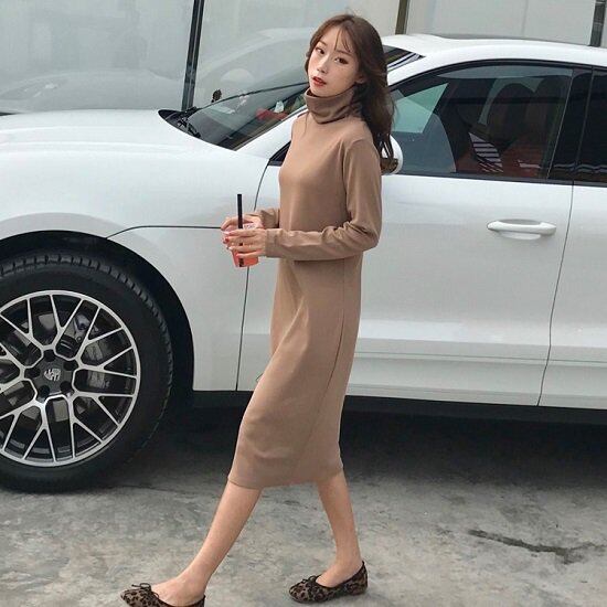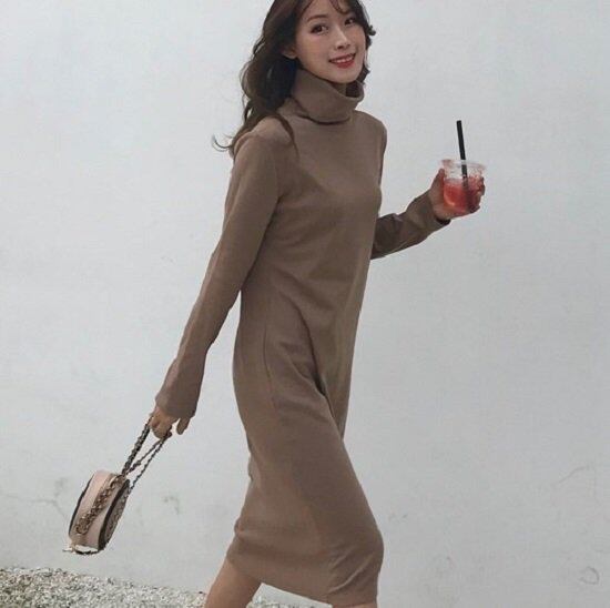 ニットワンピース レディース 大きいサイズ ミモレ丈 ハイネック タートルネック 長袖 秋冬 秋 冬 秋冬新作 ワンピース ミディ丈ワンピース ハイネックワンピース 長袖ワンピース ひざ下丈 膝下丈