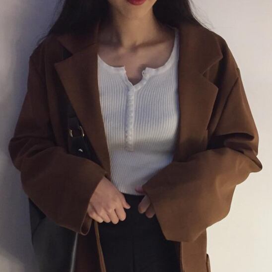 ニットトップス レディース リブニット セーター カットソー ボタン Vネック 長袖 トップス インナー 綿 コットン プルオーバー スリムフィット シンプル 無地 カジュアル 女性 ファッション
