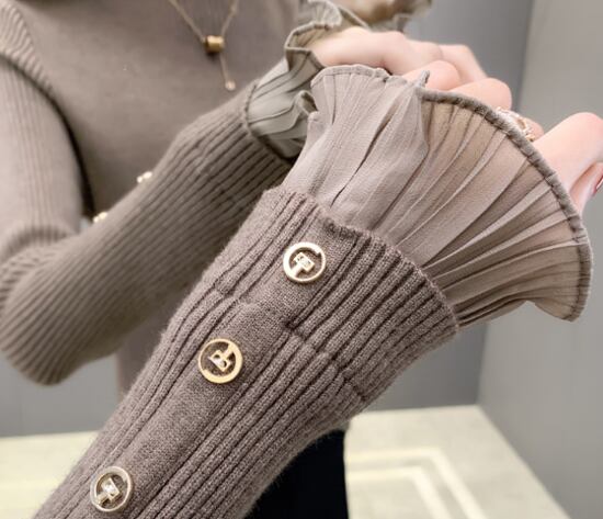 ニットトップス レディース トップス ニット セーター ハイネック フリル ボタン リブニット スリムフィット カジュアル お出掛け おしゃれ 秋冬ファッション ニットトップス レディース フリル