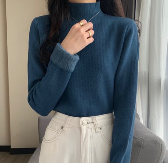 ニットトップス レディース ニット セーター ハイネック 長袖 トップス リブニット シンプル 無地 プルオーバー カジュアル 秋冬 インナー 厚手 スリムフィット 定番 ベーシック ニットトップス