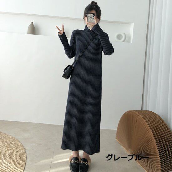 ニットワンピース ハイネック ロングワンピース タートルネック Aライン リブニット ロング丈 マキシ丈 レディース シンプル ベーシック きれいめ カジュアル おしゃれ ニットドレス 秋 冬