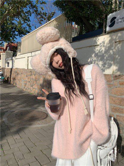 ニットトップス レディース ニット トップス セーター プルオーバー Vネック シンプル 無地 ふわふわ カジュアル お出掛け 長袖 ピンク ベーシック 定番 秋冬 ニットトップス レディース