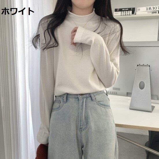 ニットトップス レディース カットソー ニット セーター トップス シンプル 無地 ハイネック 長袖 インナー カジュアル 定番 ベーシック プルオーバー ゆったり ルーズシルエット カジュアル