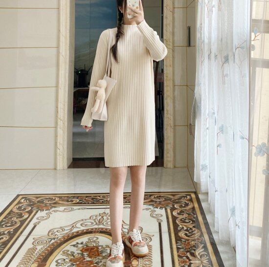 ニットワンピース ハイネックワンピース リブニットワンピース 選べる丈 ミニ丈 ミディアム丈 ミモレ丈 ロング丈 シンプル 定番 ベーシック iライン ロングニット レディース ニットドレス 秋 冬