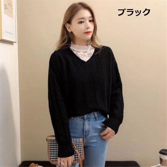 ニットトップス レディース セーター トップス ニット Vネック ケーブル編み ツイスト編み 長袖 プルオーバー カジュアル お出掛け おしゃれ 厚手 秋冬 暖かい 女性 ニットセーター トップス