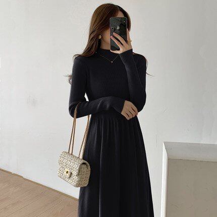 ニットワンピース ロング ミニ 大きいサイズ レディース 冬 秋 秋冬 ハイネック ボトルネック 長袖 ワンピース Aライン ロングワンピース ミニワンピース ハイネックワンピース 長袖ワンピース