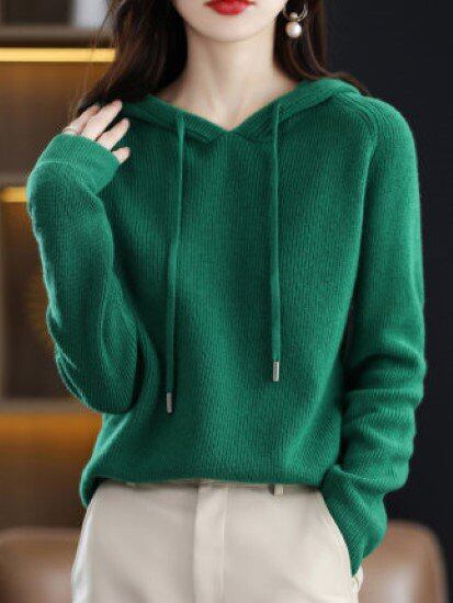 ニットトップス レディース ニット セーター トップス フード付き 長袖 シンプル 無地 カジュアル お出掛け リブニット パーカー プルオーバー ベーシック 定番 おしゃれ ファッション 女性