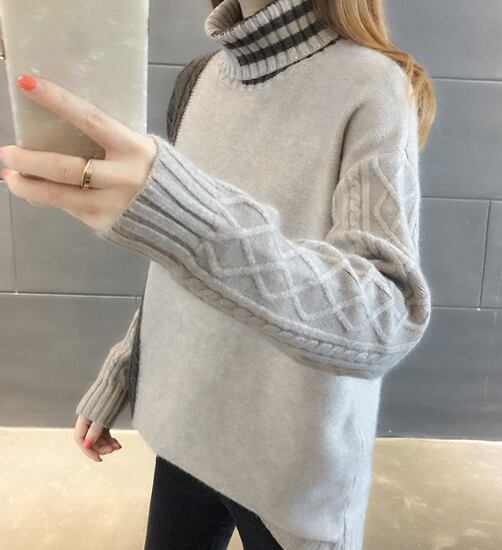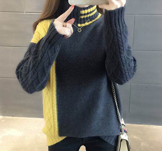 ニットトップス レディース ニットセーター トップス ニット セーター タートルネック 配色 コントラストカラー 長袖 カジュアル おしゃれ プルオーバー 厚手 ケーブル編み 秋冬 暖かい 女性