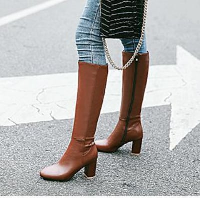 ロングブーツ チャンキーヒール サイドファスナー 太ヒール フェイクレザー エコレザー ジッパー 黒 ブラック ブラウン ベージュ きれいめ エレガント おしゃれ 高めヒール 小さいサイズ 秋 冬