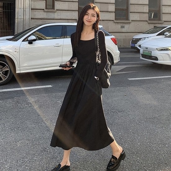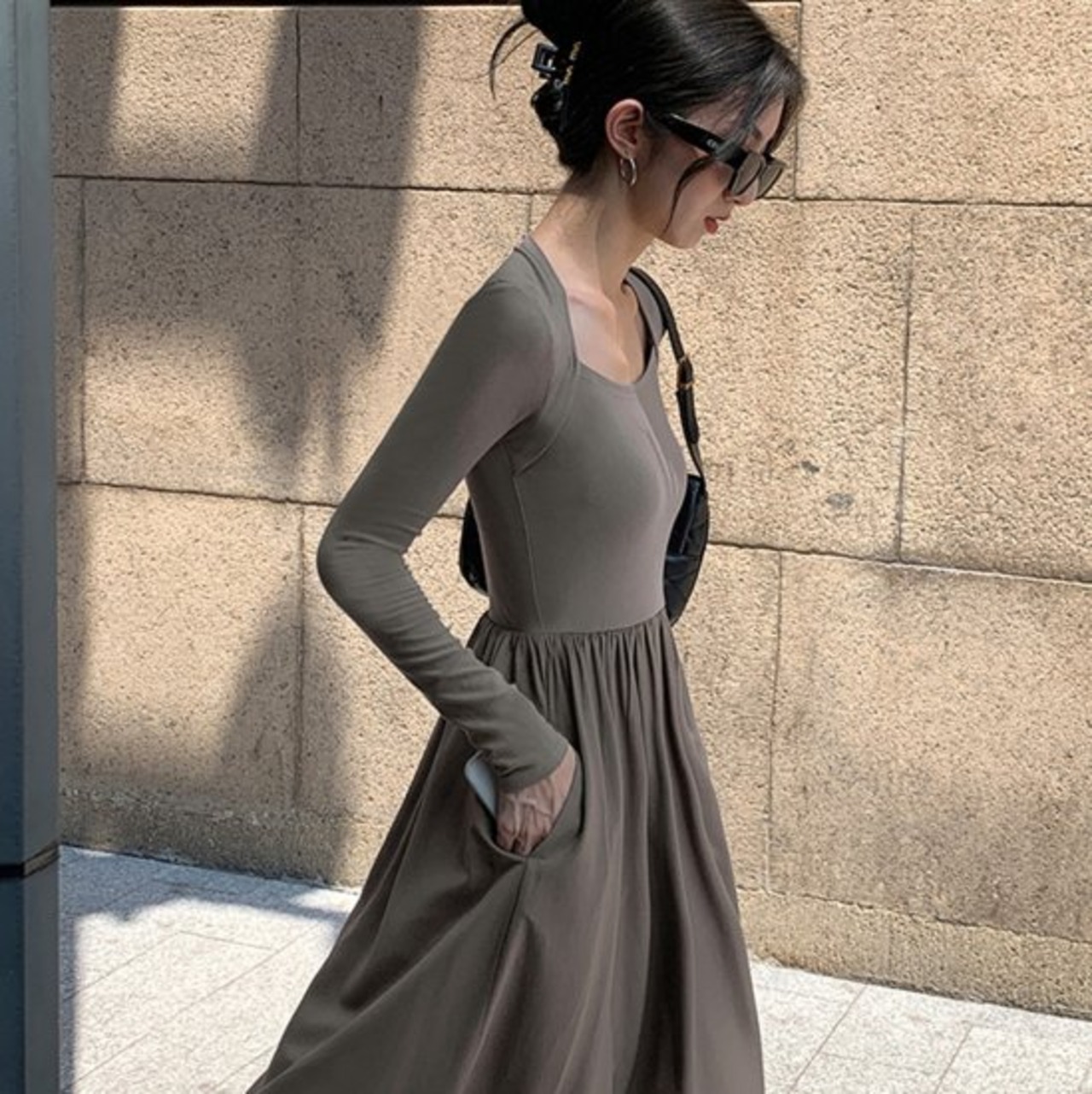 ロングワンピース フレア 秋冬 レディース ニットワンピース ロング ギャザー 長袖 Aライン ニット 秋冬服 秋 冬 ワンピ ニットワンピ 長袖ワンピース Aラインワンピース ギャザーワンピース