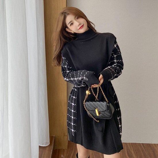 ミニワンピース 長袖 大きいサイズ チェック 秋 冬 ニット ワンピース ミニ ニットワンピース レディース 秋冬 ハイネック ドッキングワンピース ハイネックワンピース 切り替え チェックワンピース