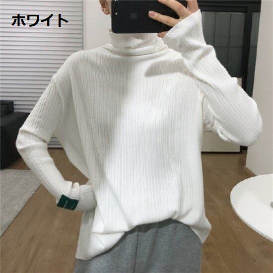 ニットトップス レディース ニット セーター トップス ハイネック リブニット 長袖 プルオーバー カジュアル インナー きれいめ シンプル 無地 袖ロゴ ゆったり ルーズシルエット ニット 女性