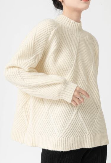 ニットトップス レディース セーター トップス ニット ハイネック 長袖 ダイアモンドパターン カジュアル お出掛け おしゃれ プルオーバー ゆったり 秋冬 ニットトップス レディース セーター 女性
