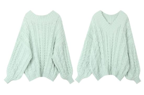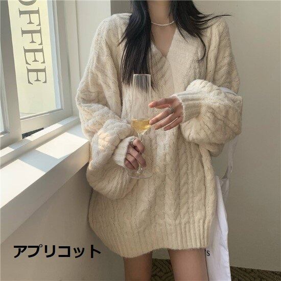 ニットトップス レディース セーター ニット トップス 長袖 Vネック ゆったり ルーズ オーバーシルエット ケーブル編み パステルカラー ボリューム袖 プルオーバー 体型カバー 秋冬 厚手