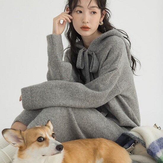 もこもこニットが可愛いパーカーワンピースです。