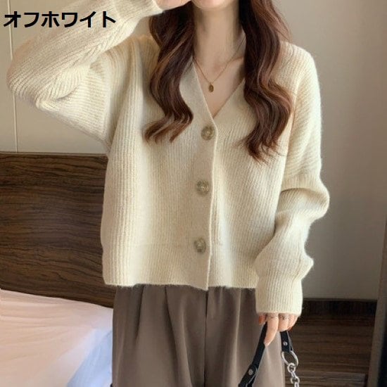 ニットカーディガン レディース カーディガン ニット 羽織 セーター トップス フロントボタン Vネック シンプル 無地 長袖 ベーシック 定番 リブニット ゆったり ルーズ カジュアル おしゃれ