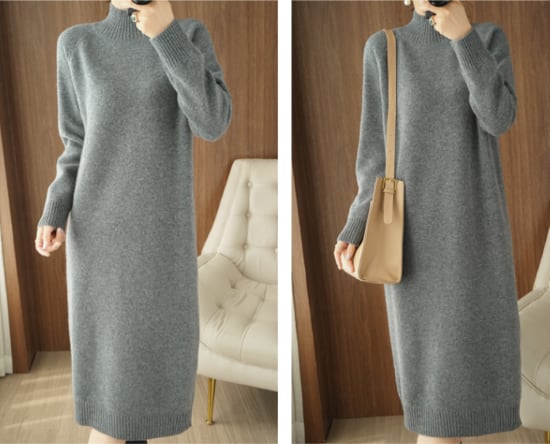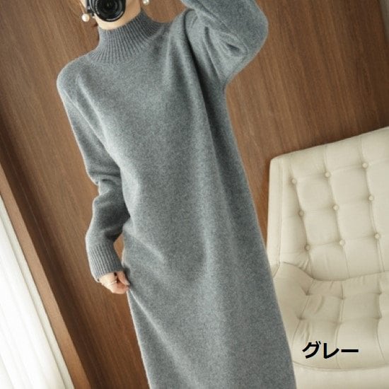 ニットワンピース レディース ワンピース ニット ハイネック シンプル 無地 長袖 プルオーバー ウール ロング丈 ロングワンピース カジュアル ベーシック 定番 ゆったり リーズ ニットワンピ 女性