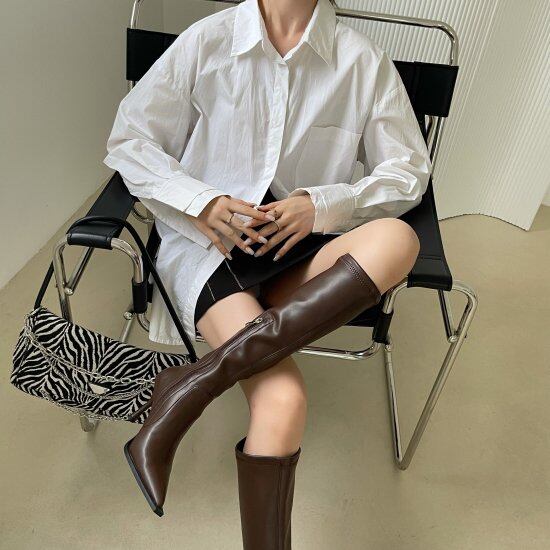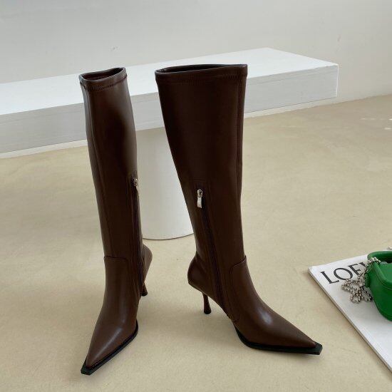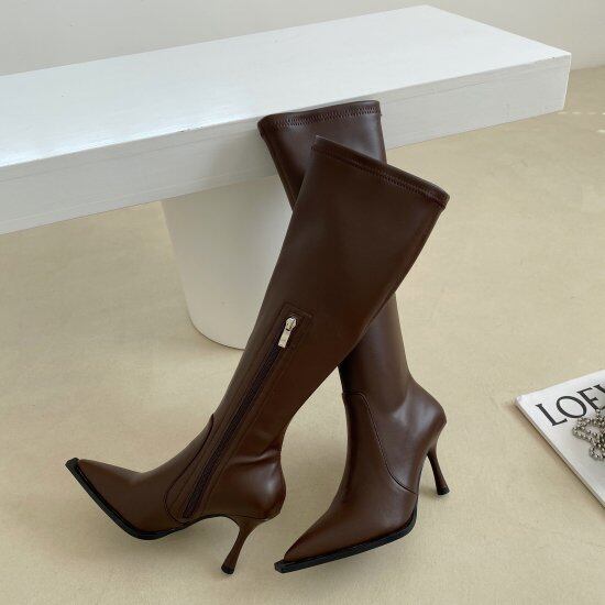 ロングブーツ ポインテッドトゥ サイドファスナー ハイヒール フェイクレザー エコレザー スリムフィット 黒 ブラック 白 ホワイト ブラウン 7cmヒール レディース きれいめ エレガント 秋 冬