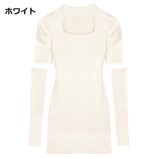 ニットワンピース レディース ワンピース ミニワンピース 半袖 アームカバー付き ミニスカート タイト スリムフィット セクシー ハイネック ショートスカート おしゃれ ブラック ホワイト 黒 白