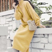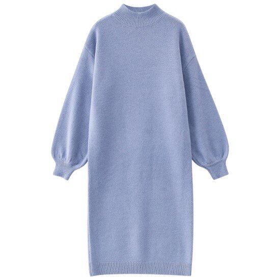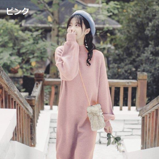 ニットワンピース レディース ワンピース ミドル丈ワピース ニットワンピ 長袖 ハイネック パステルカラー キュート シンプル 無地 カジュアル お出掛け 長袖 プルオーバー ボリューム袖 ニット