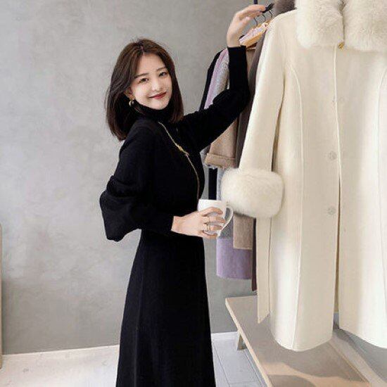 ニットワンピース レディース ワンピース ニットワンピ ロングワンピース ロング丈 ハイネック ウエストリボン ハイウエスト 長袖 シンプル 無地 きれいめ カジュアル お出掛け おしゃれ 秋冬