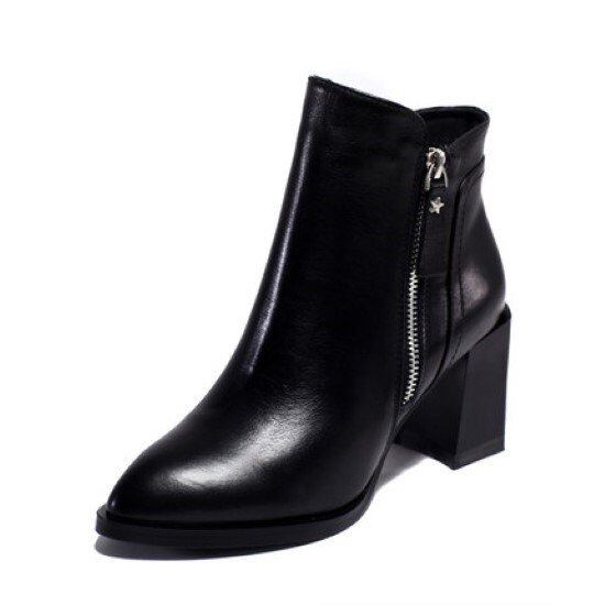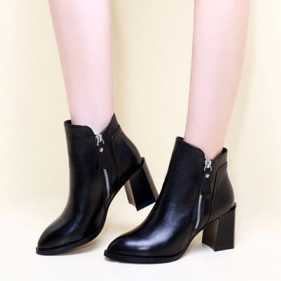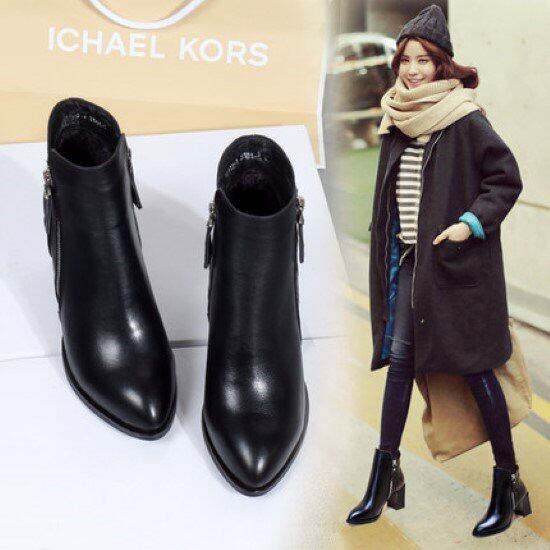 ショートブーツ レディース アンクルブーツ ブーツ 靴 シューズ ポインテッドトゥ 太ヒール チャンキーヒール サイドジッパー きれいめ カジュアル お出掛け おしゃれ シンプル 無地 ブラック 黒