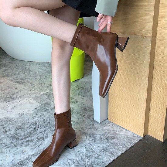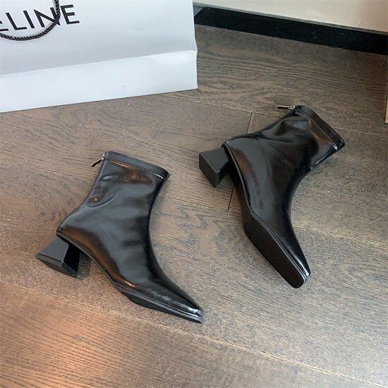 ショートブーツ レディース ブーツ ローヒール ショート スクエアトゥ 秋冬 秋 冬 新作 チャンキーヒール チャンキー チャンキーブーツ フェイクレザー ローヒールブーツ レディースブーツ 太ヒール