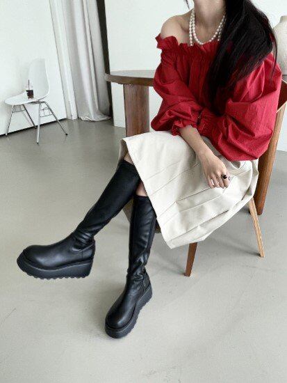 ロングブーツ レディース ブーツ シューズ 靴 ロング丈 厚底ブーツ カジュアル お出掛け おしゃれ 黒 ブラック 脚長 サイドジッパー シンプル 無地 美脚 PU 細身 ロング ファッションブーツ