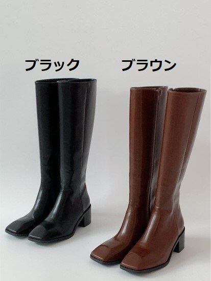 ロングブーツレディース ブーツ 靴 シューズ ロング丈 サイドジッパー スクエアトゥ シンプル 無地 美脚 カジュアル きれいめ お出掛け おしゃれ 太ヒール チャンキーヒール 履きやすい 女性靴